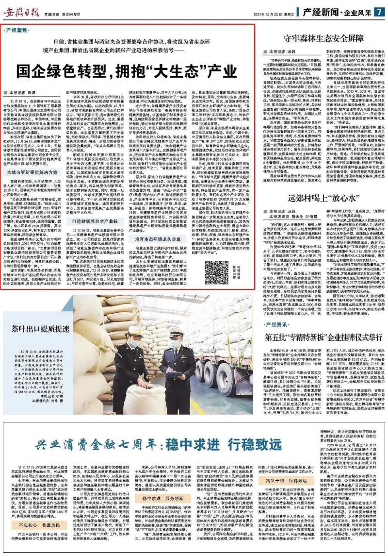 安徽日报:国企绿色转型 拥抱“大生态”产业